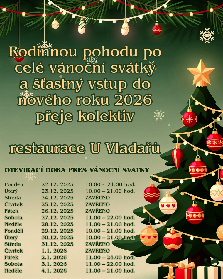 Jsme rádi, že jste navštívili naše stránky a těšíme se na Vaši návštěvu v restauraci a pensionu „U vladařů“.